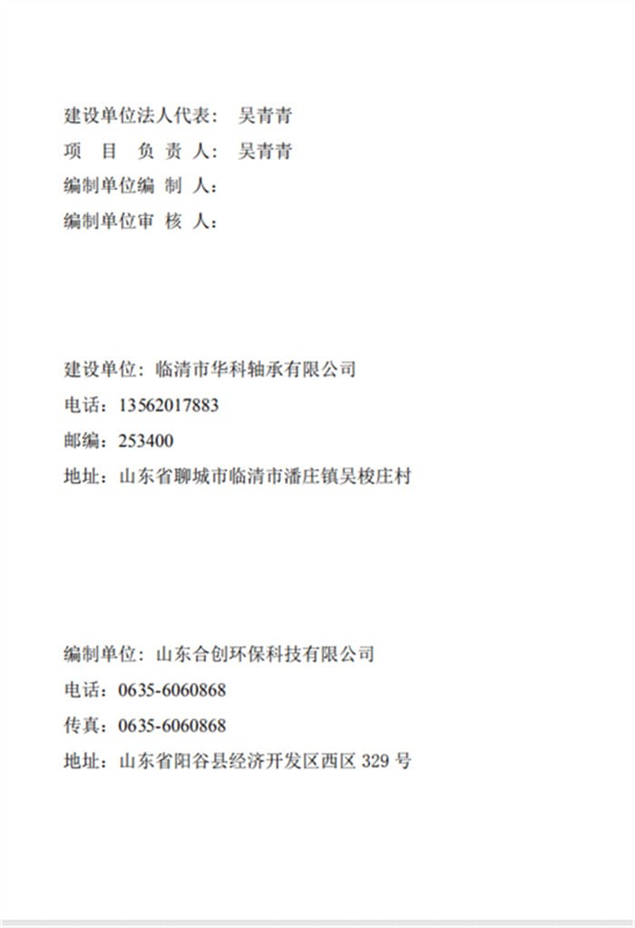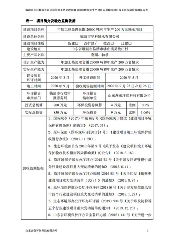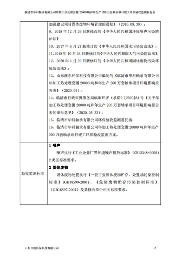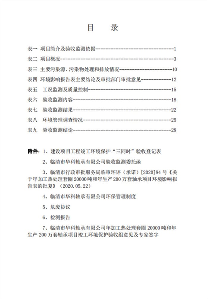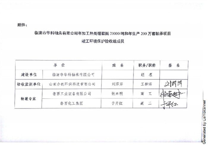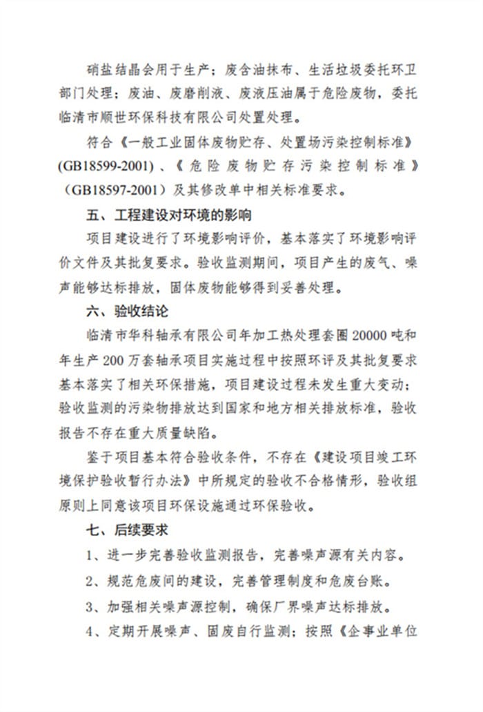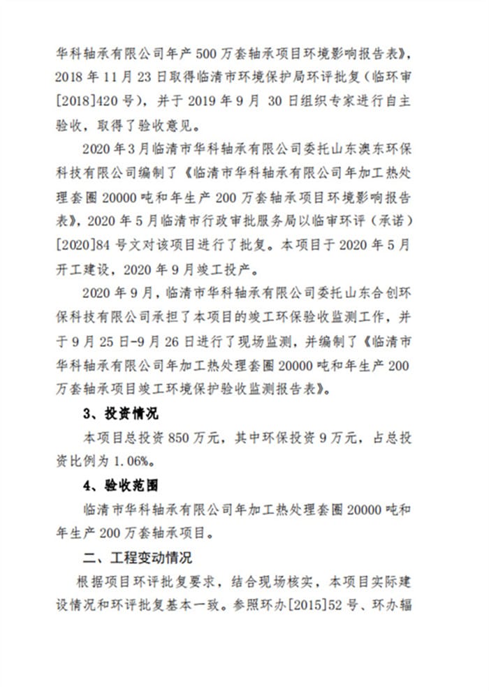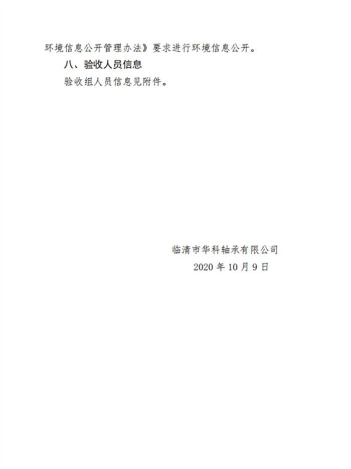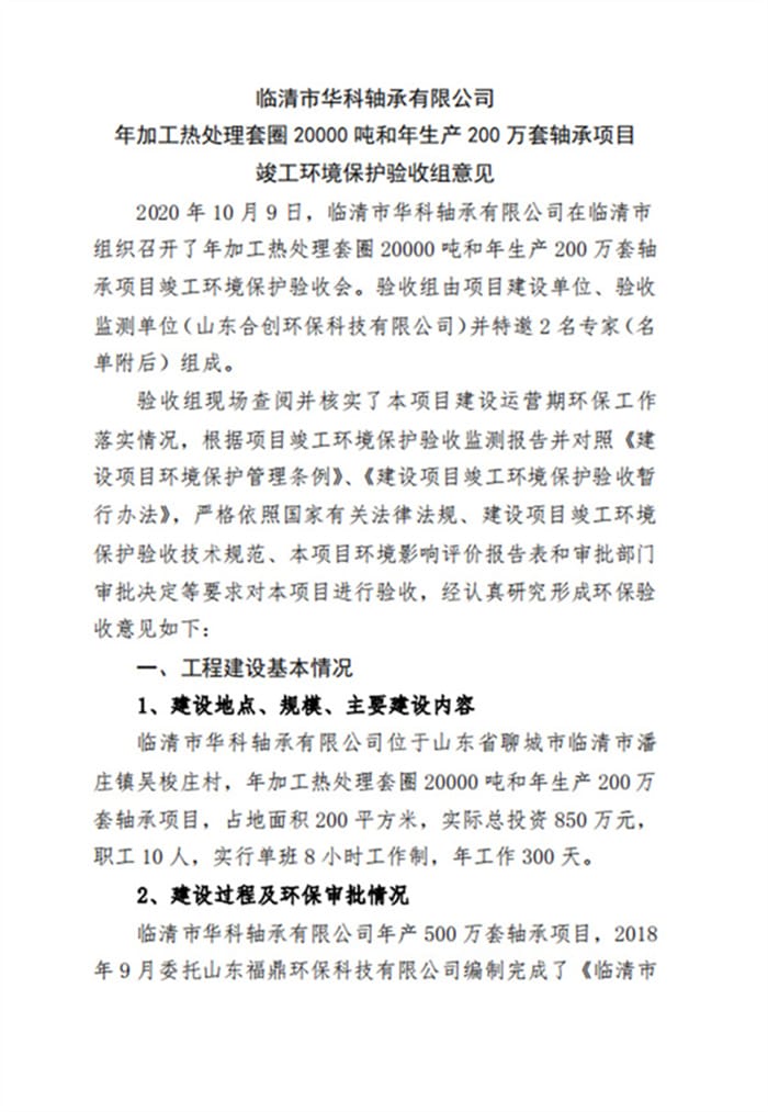 临清市华科轴承有限公司验收报告