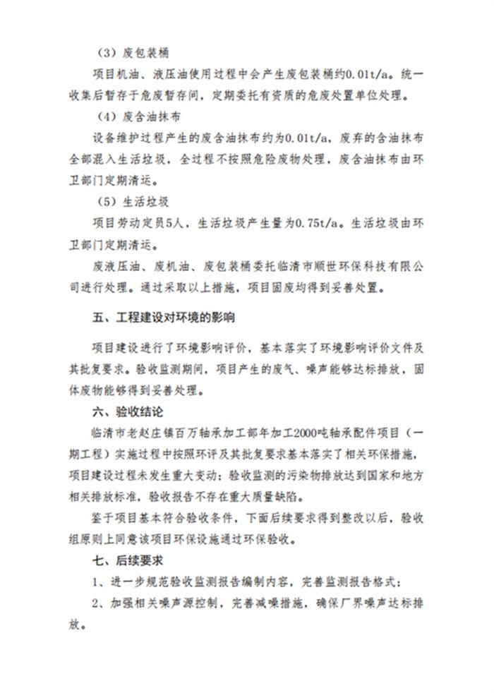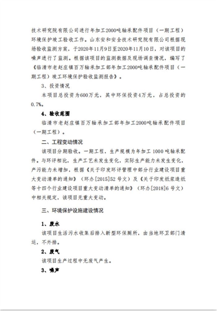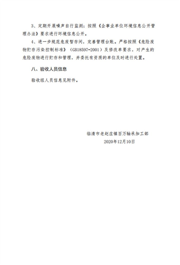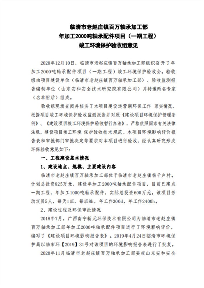 临清市老赵庄镇百万轴承加工部验收报告(意见)