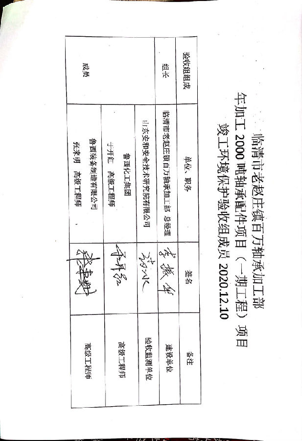临清市老赵庄镇百万轴承加工部验收报告(签字页)