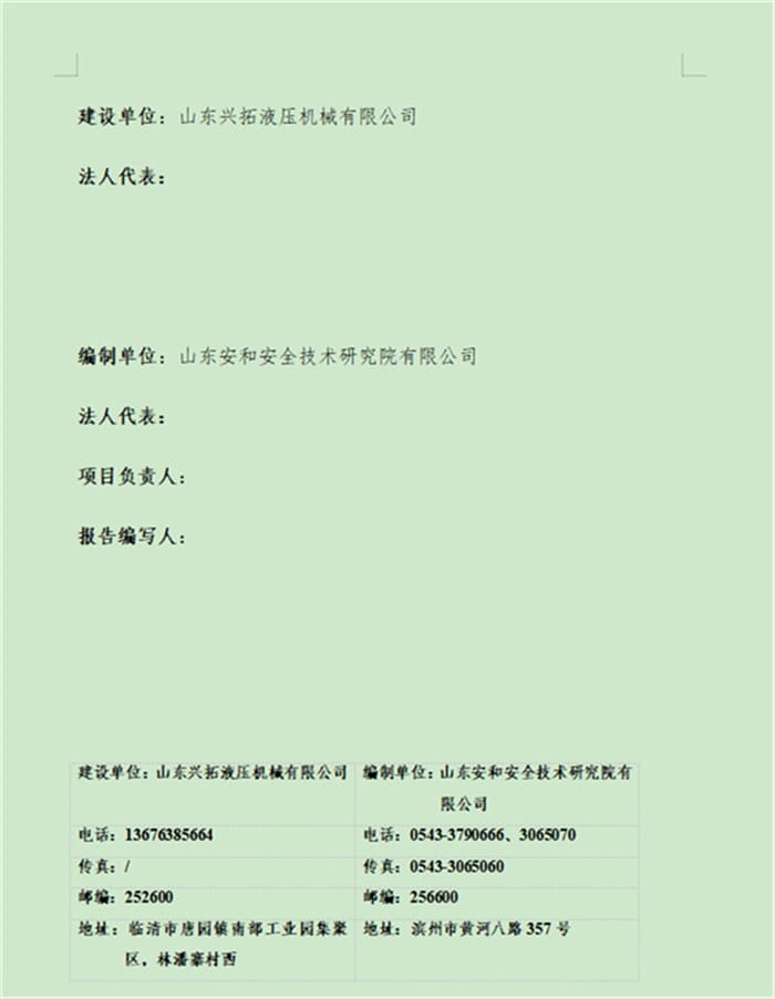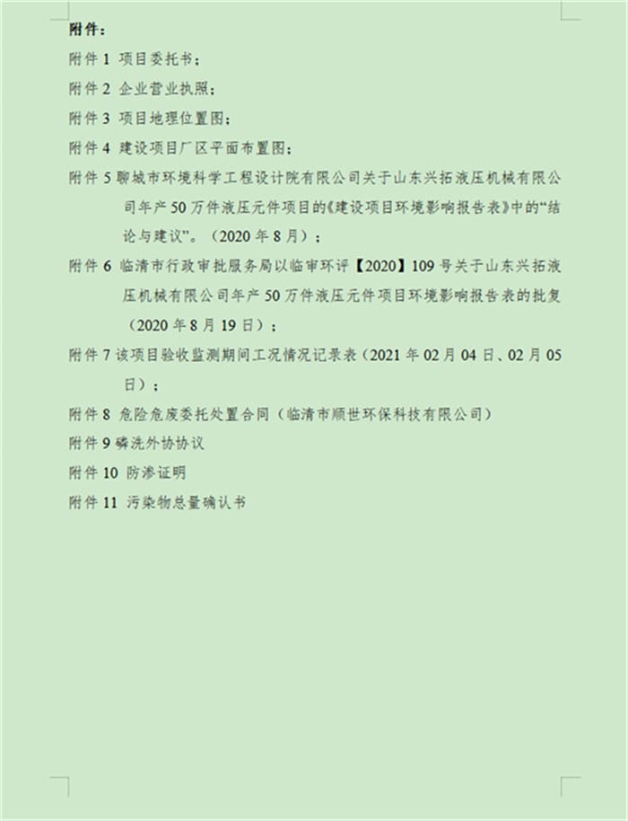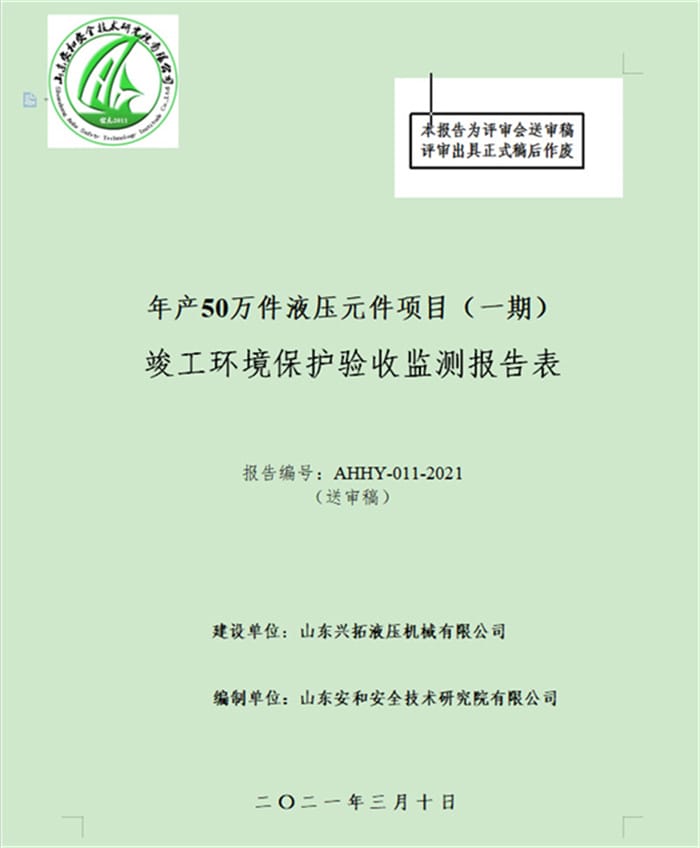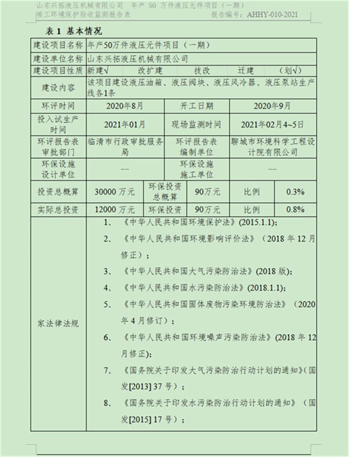山东兴拓液压机械有限公司年产50万件液压元件项目(一期)验收报告