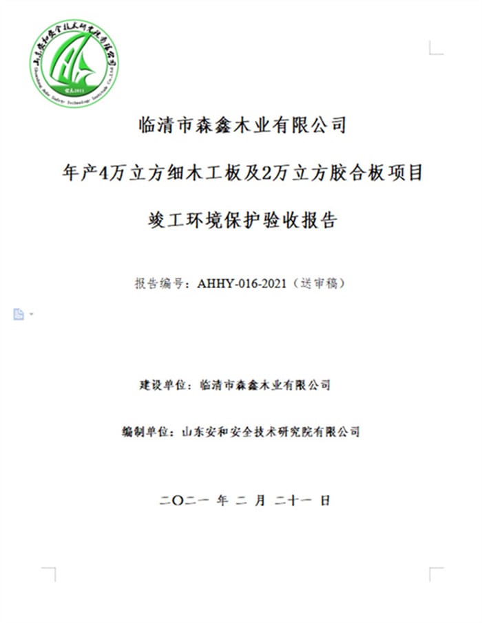 临清市森鑫木业有限公司年产4万立方细木工板及2万立方胶合板项目验收报告