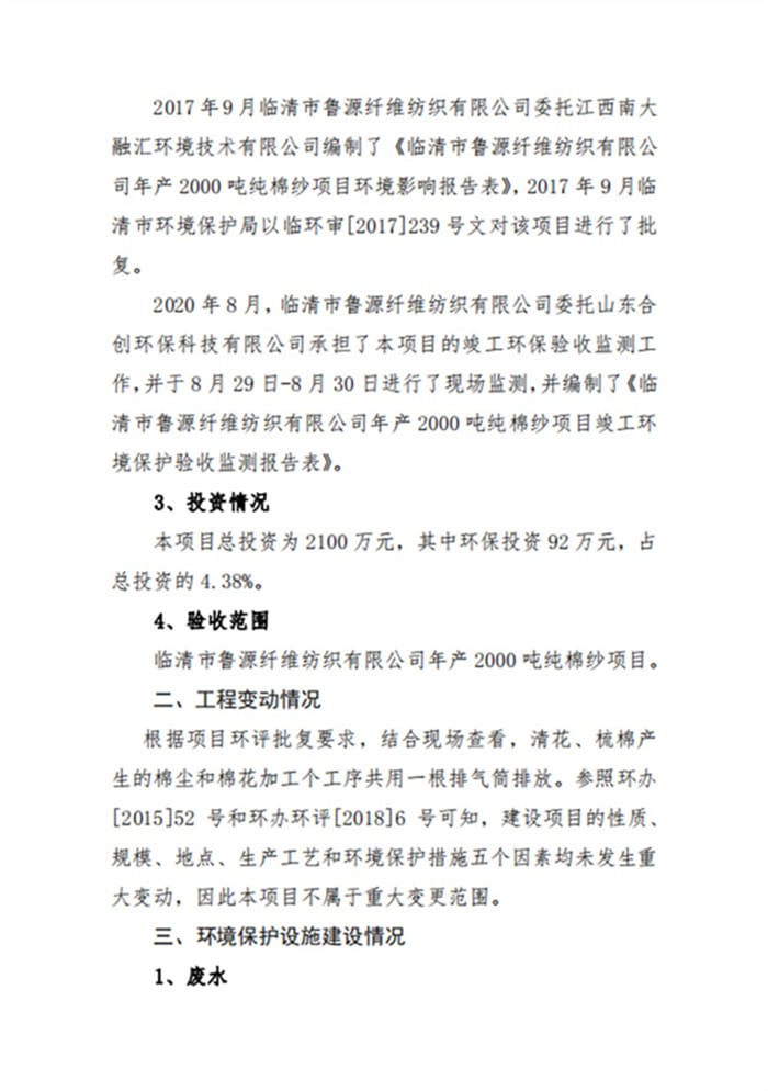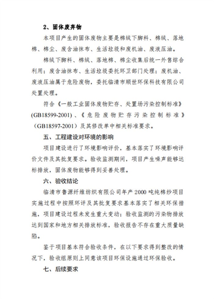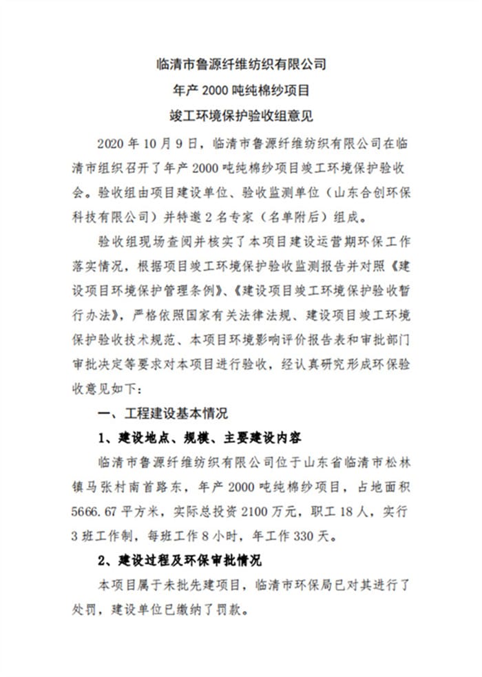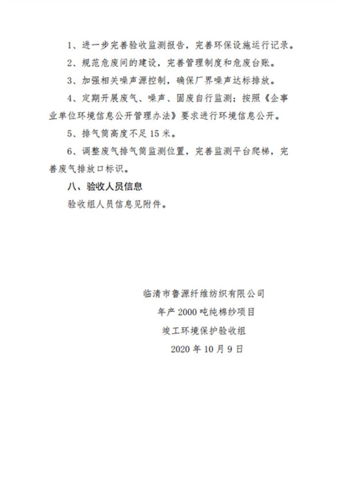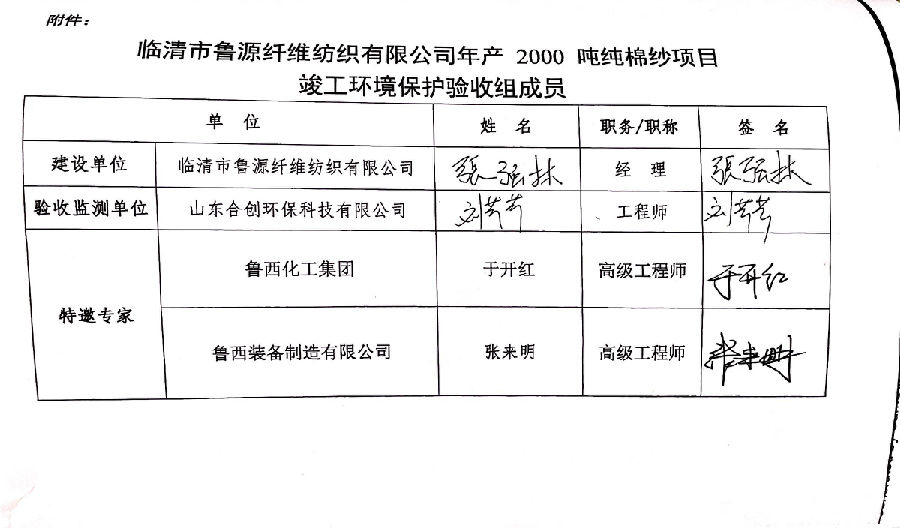 临清市鲁源纤维纺织有限公司年产2000吨纯棉纱项目验收报告(签字页与专家意见)