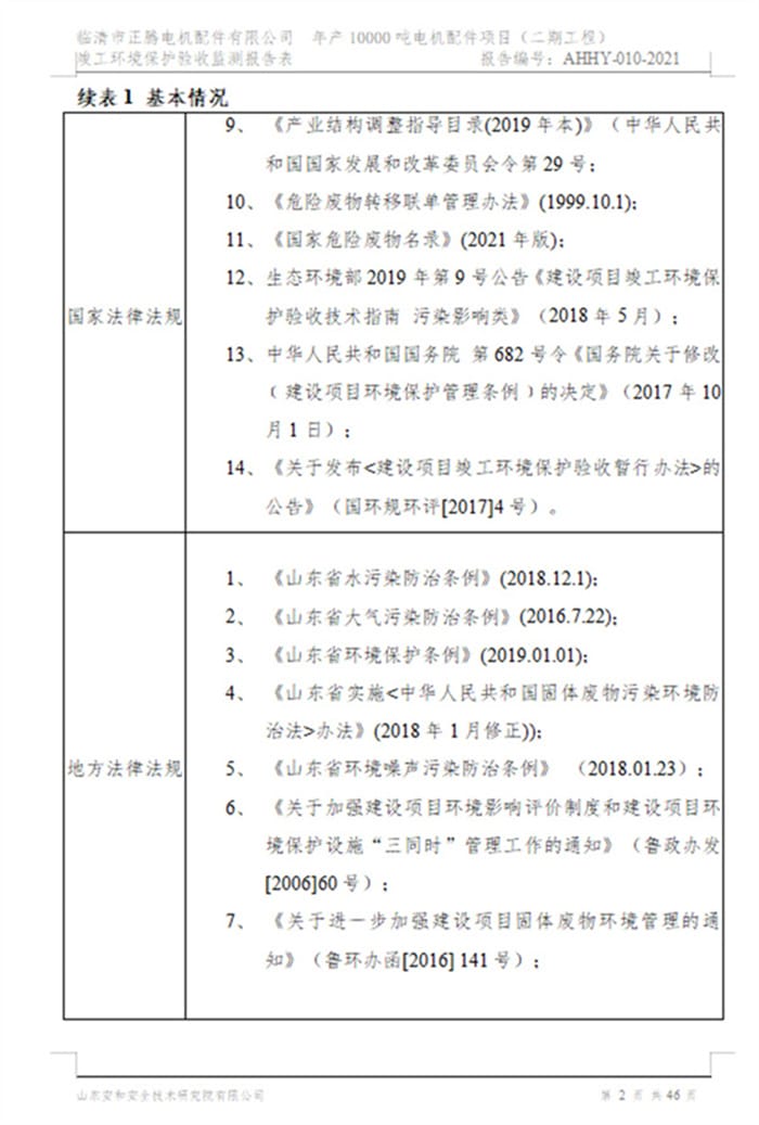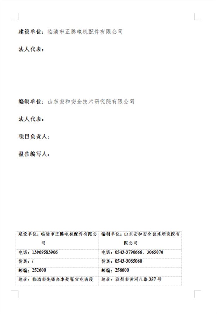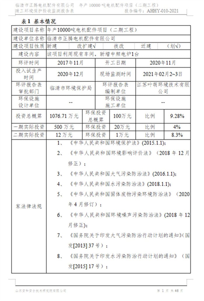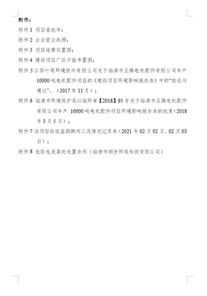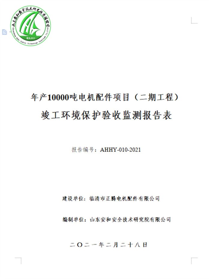 临清市正腾电机配件有限公司年产10000吨电机配件项目(二期工程)