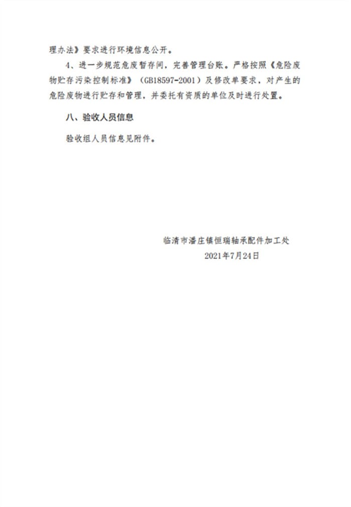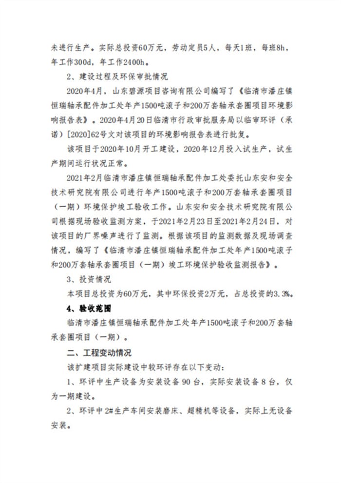 临清市久恒精密轴承制造有限公司年产十万套二类轴承