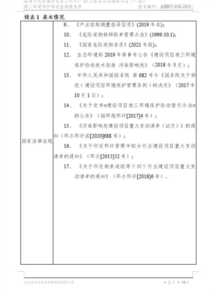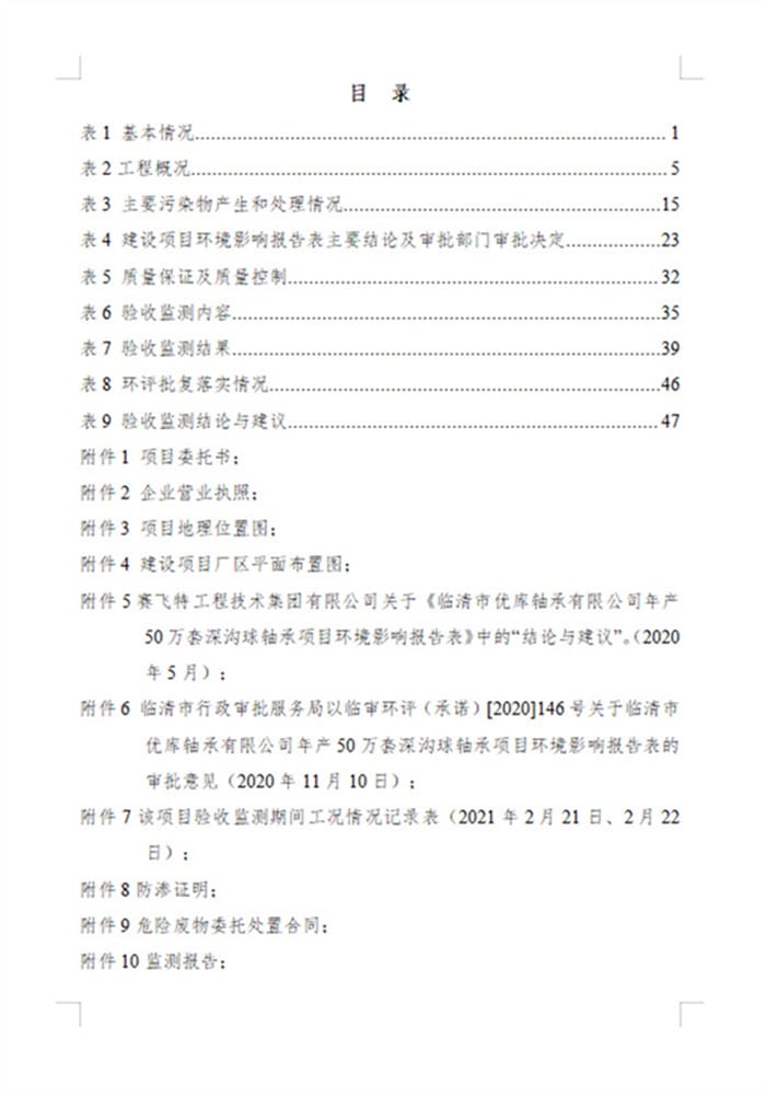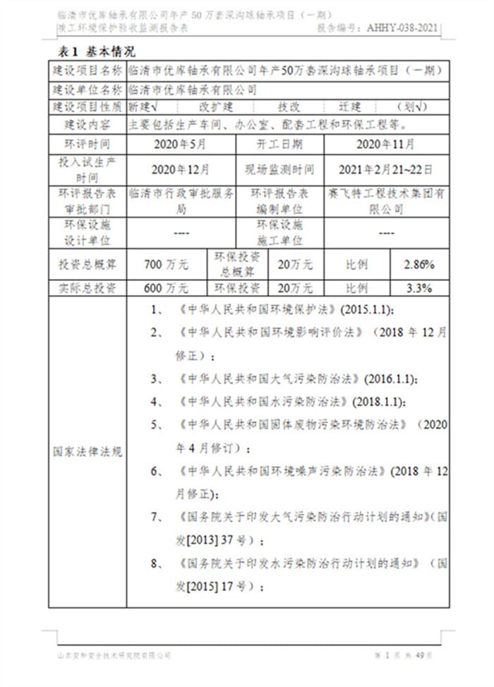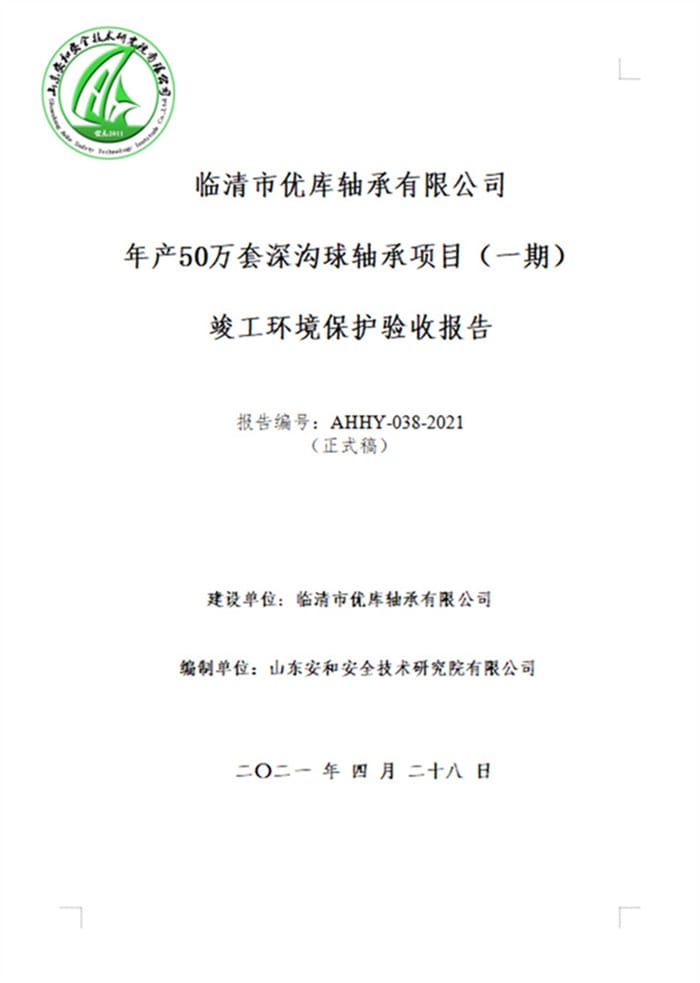临清市优库轴承有限公司年产50万套深沟球轴承项目(一期)验收报告
