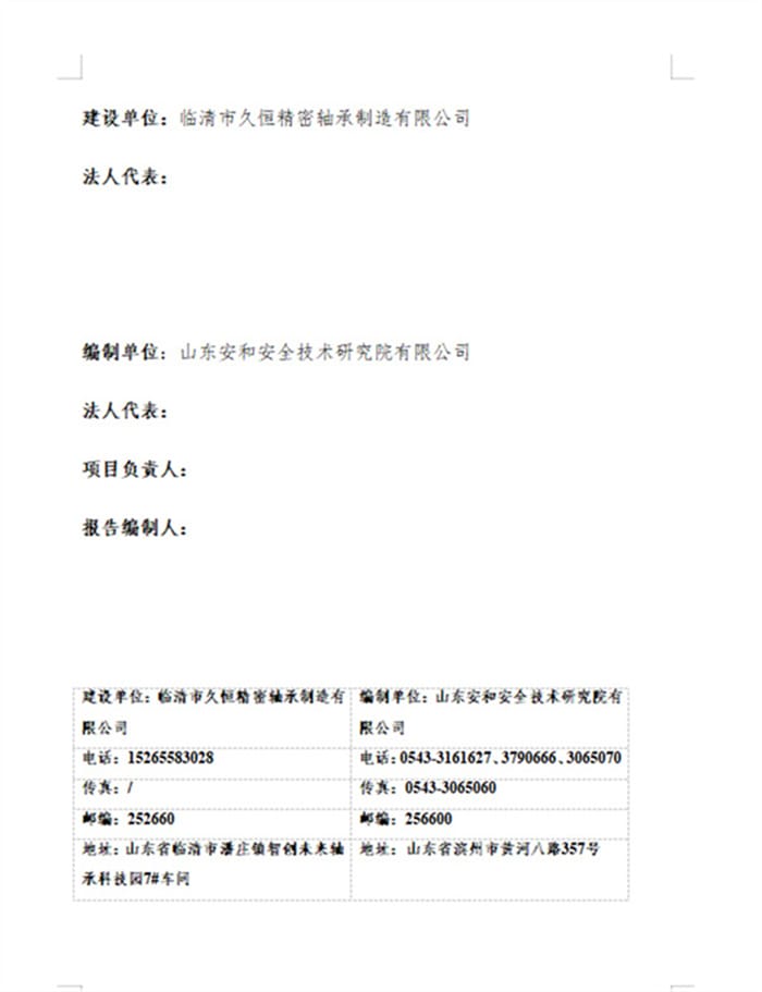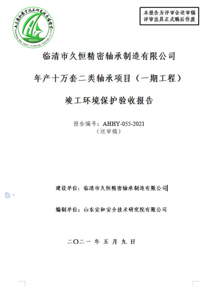 临清市久恒精密轴承制造有限公司年产十万套二类轴承