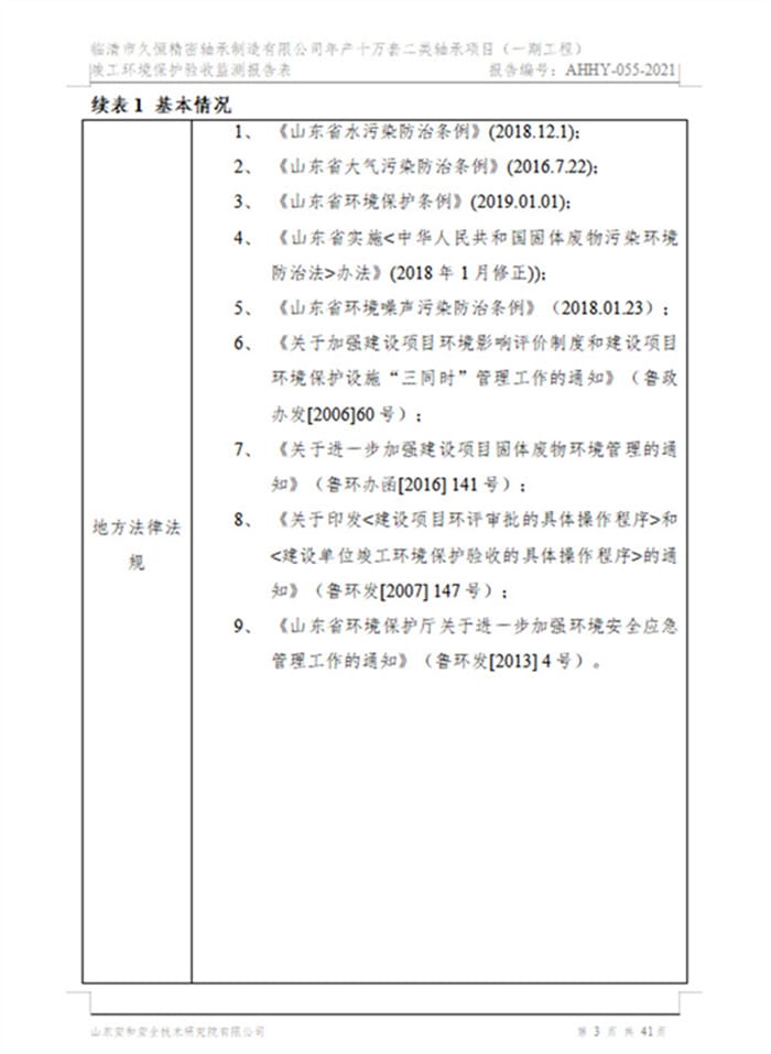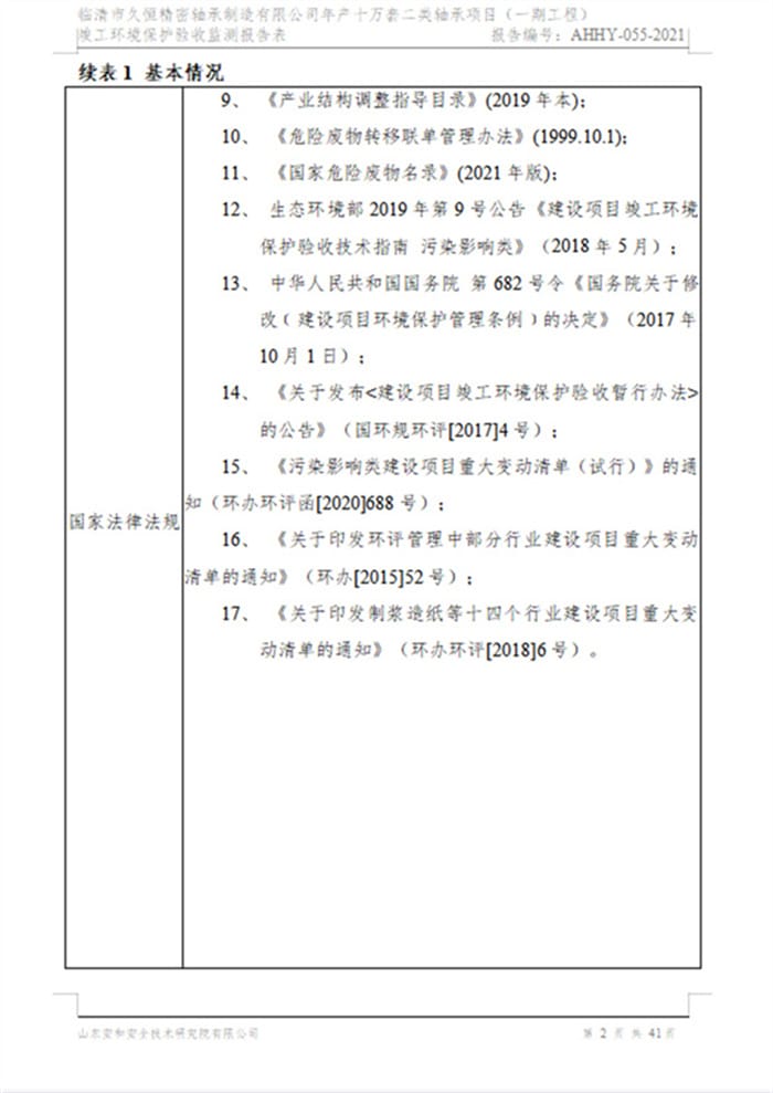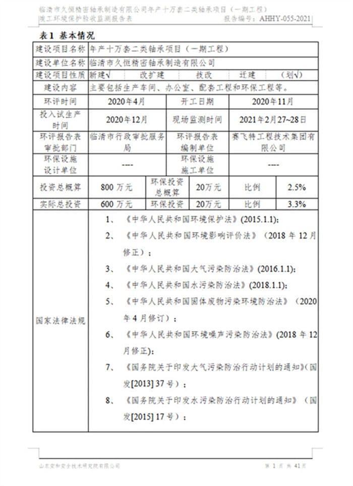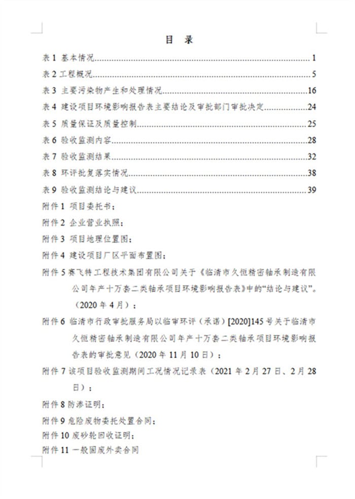 临清市久恒精密轴承制造有限公司年产十万套二类轴承项目(一期工程)验收报告)
