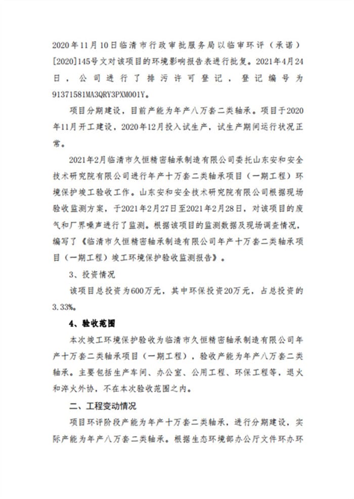 临清市久恒精密轴承制造有限公司年产十万套二类轴承