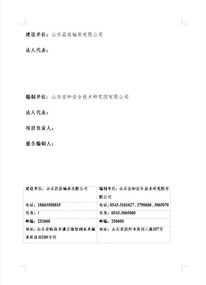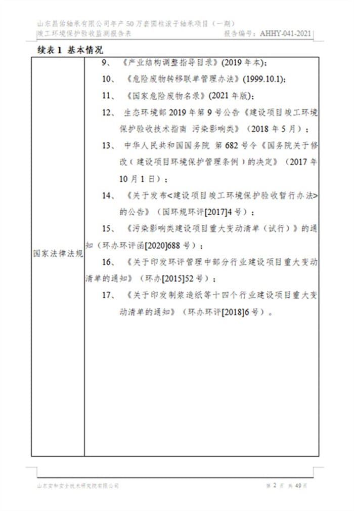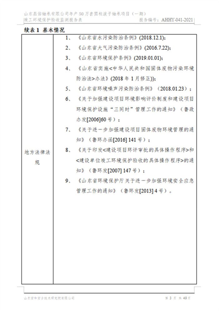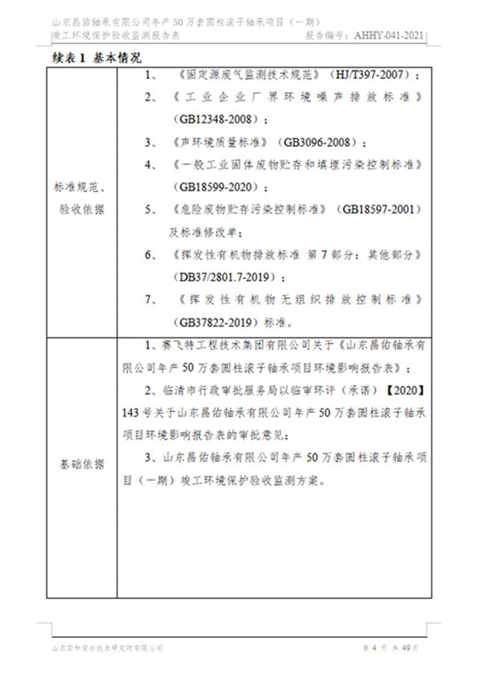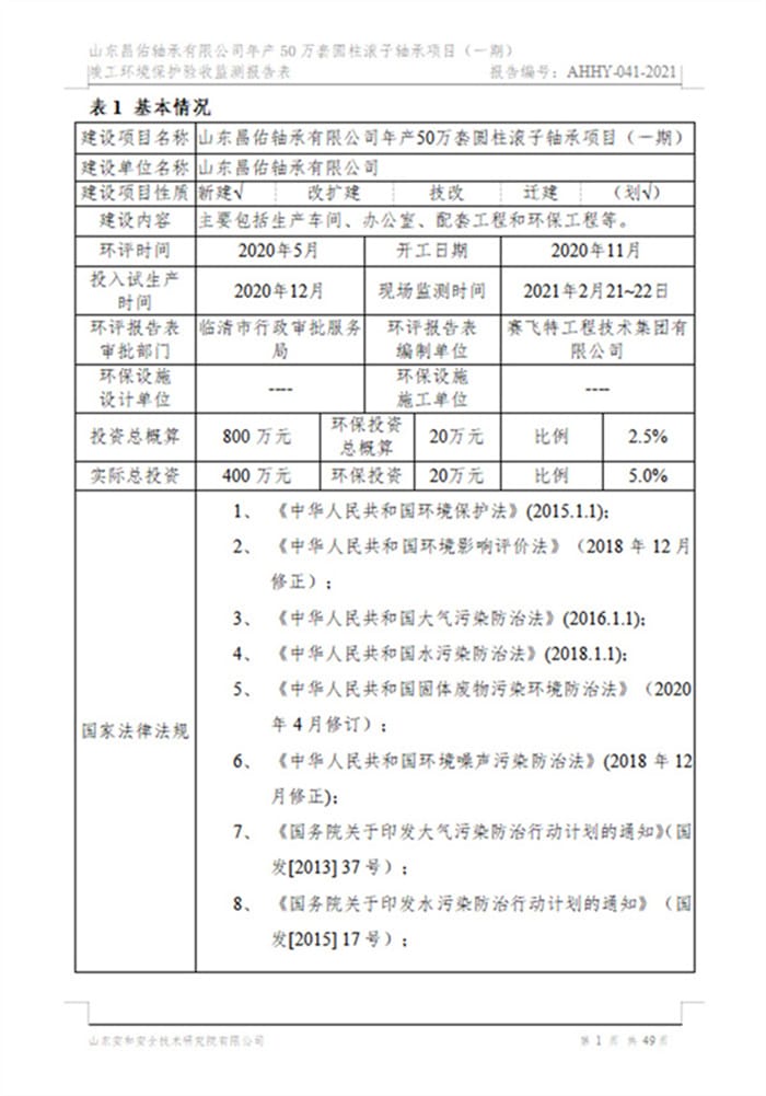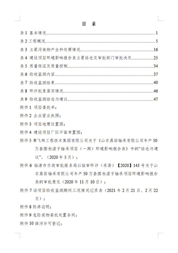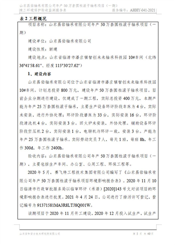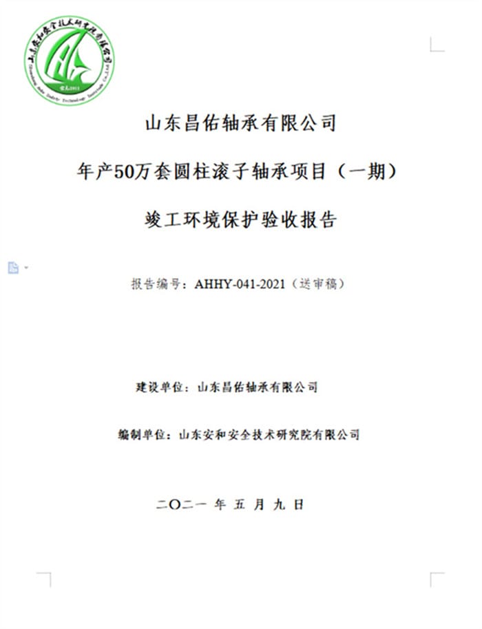 山东昌佑轴承有限公司年产50万套圆柱滚子轴承项目(一期)验收报告