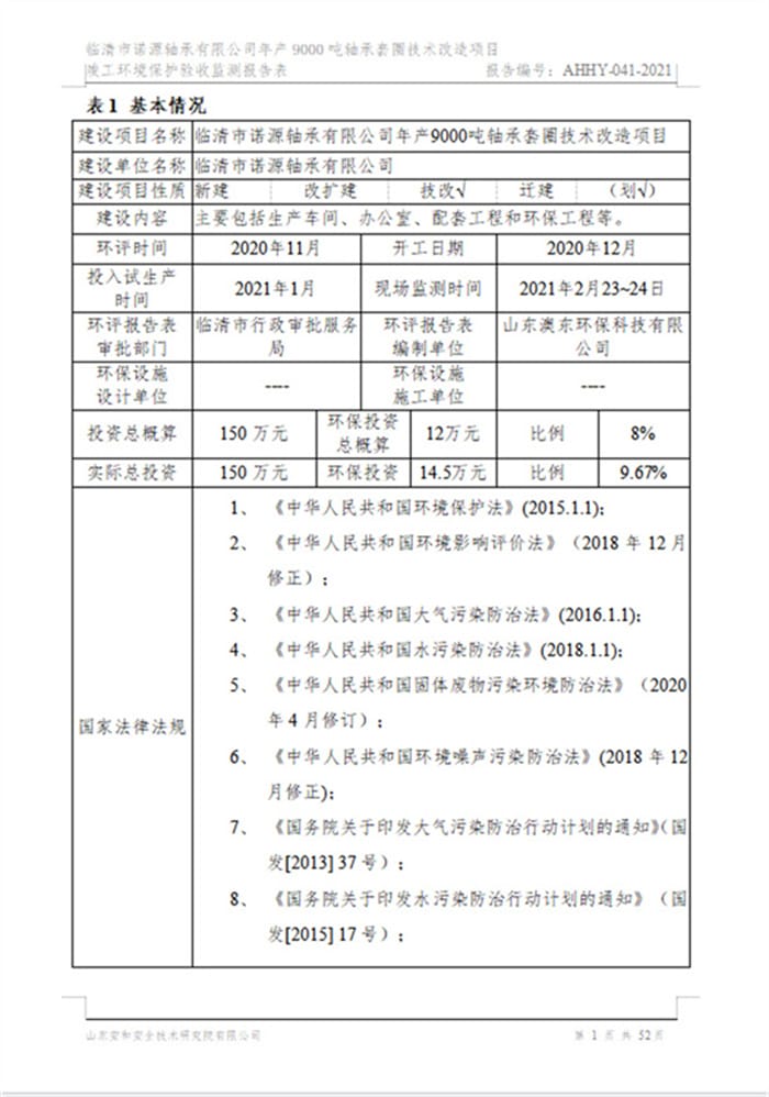 临清市诺源轴承有限公司年产9000吨轴承套圈技术改造项目