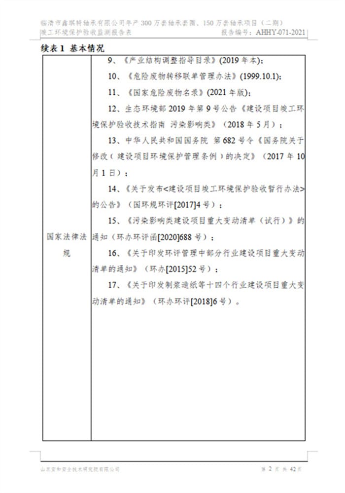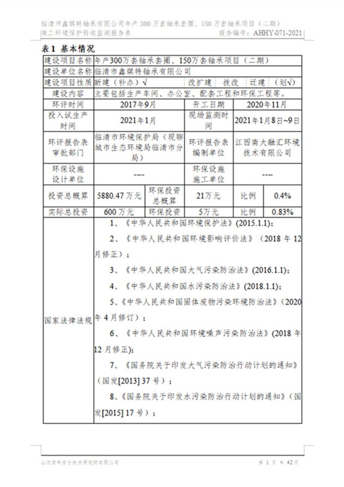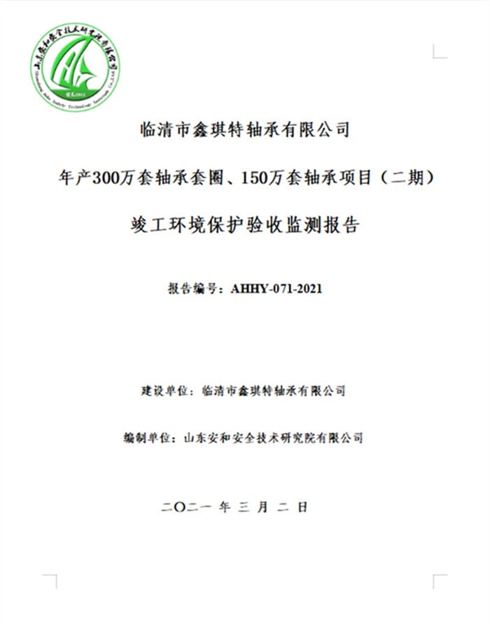 临清市鑫琪特轴承有限公司年产300万套轴承套圈、150万套轴承项目(二期)验收报告