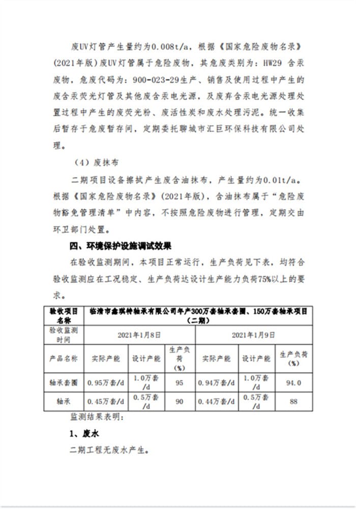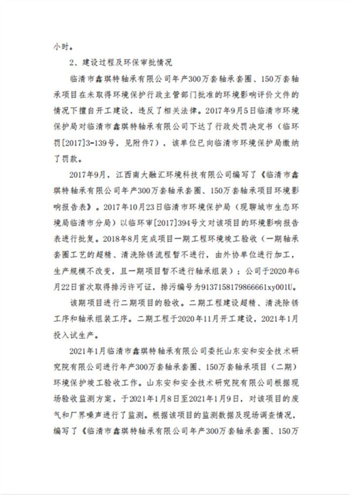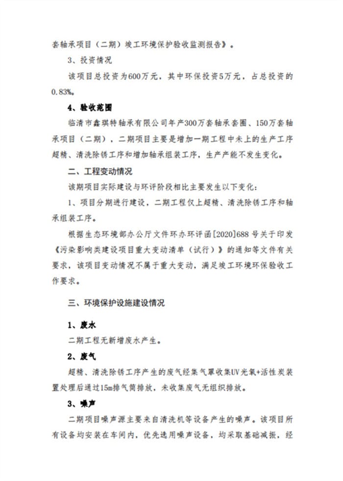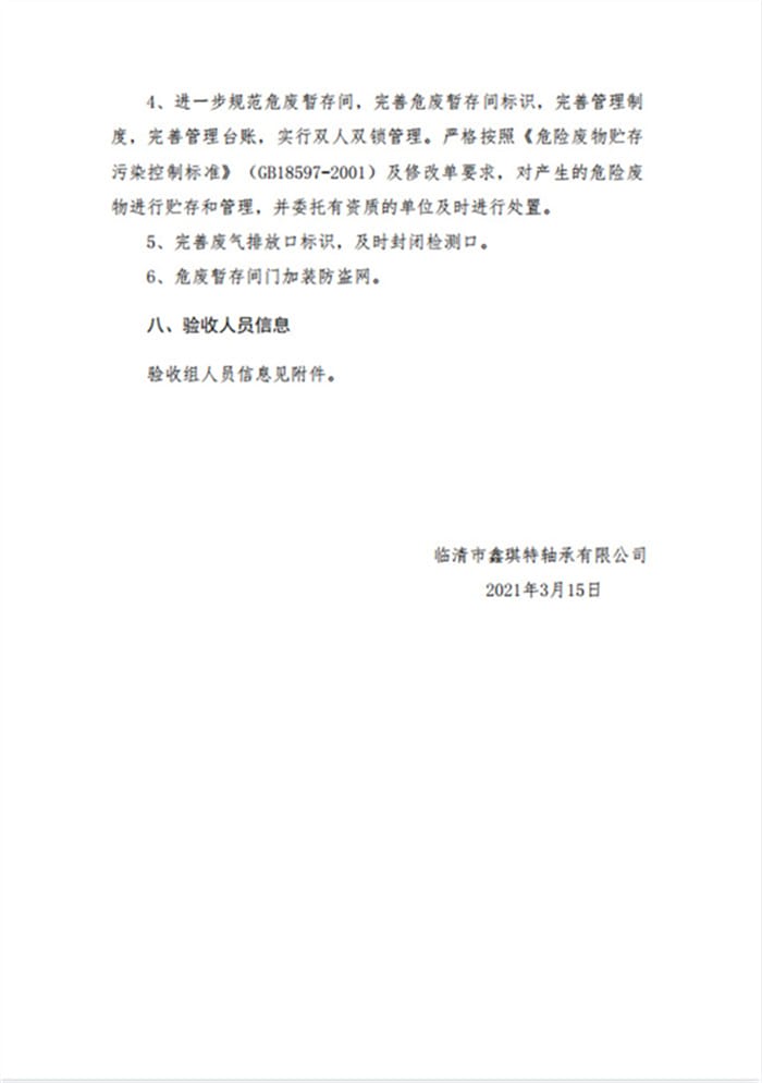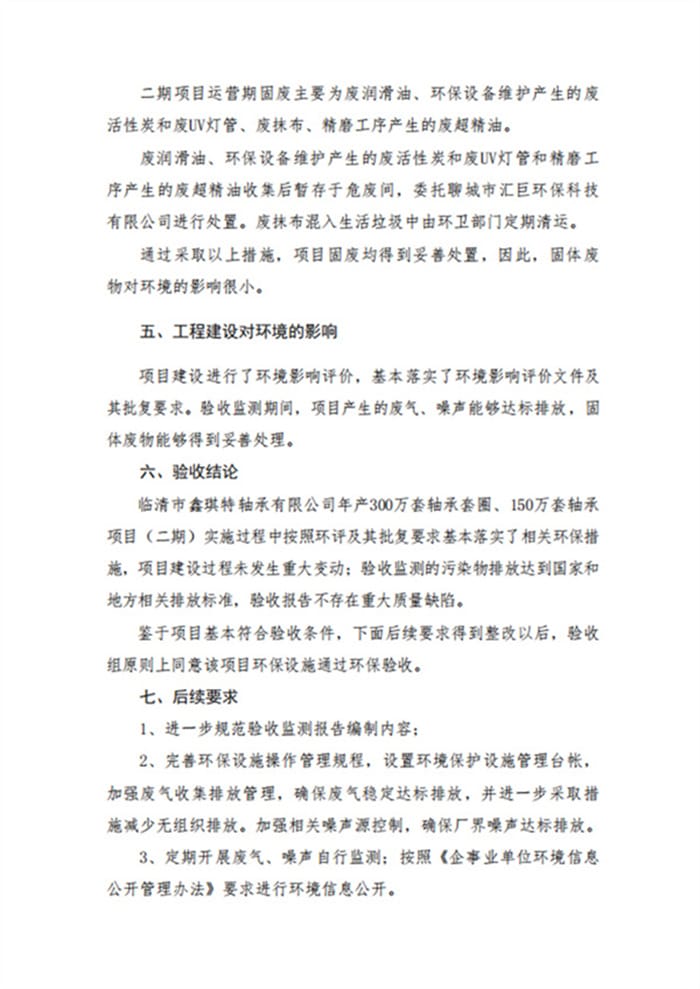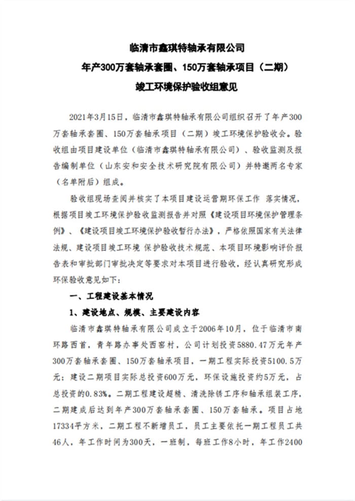 临清市鑫琪特轴承有限公司年产300万套轴承套圈、150万套轴承项目(二期)验收意见