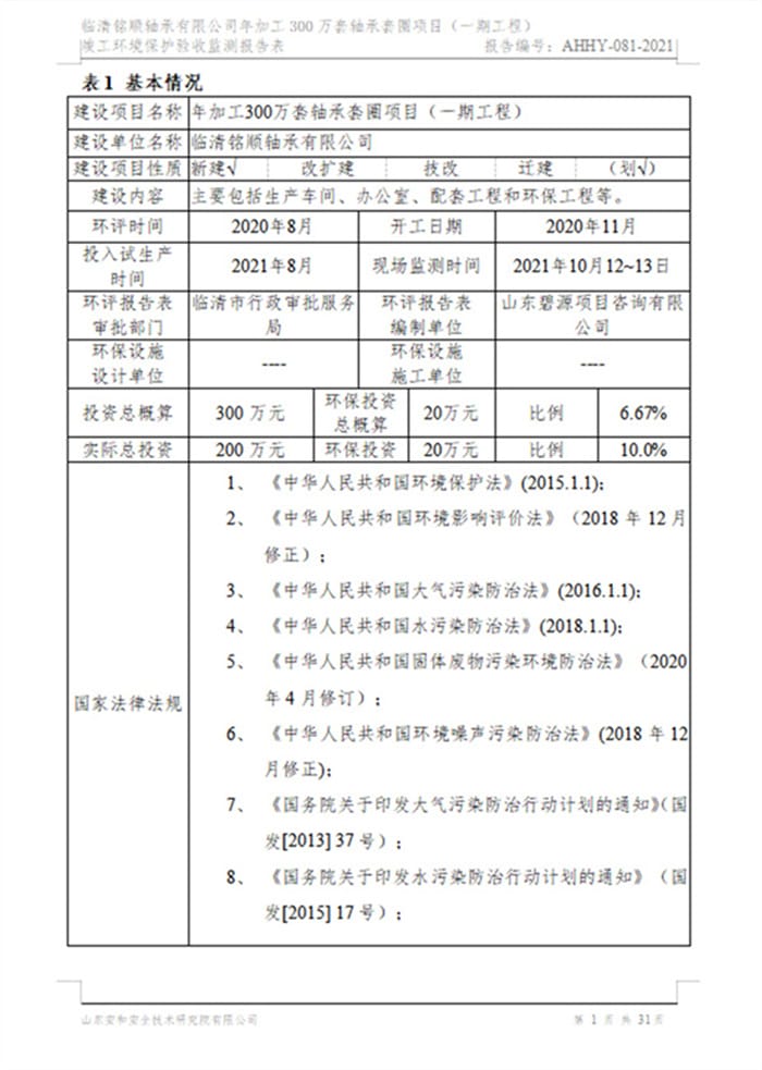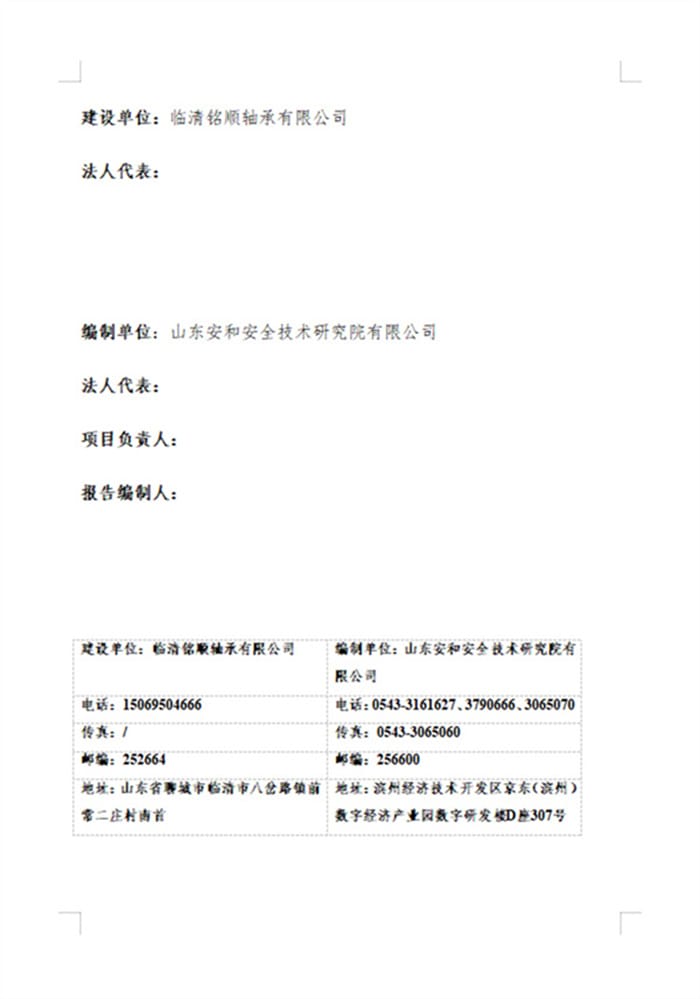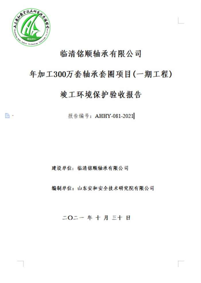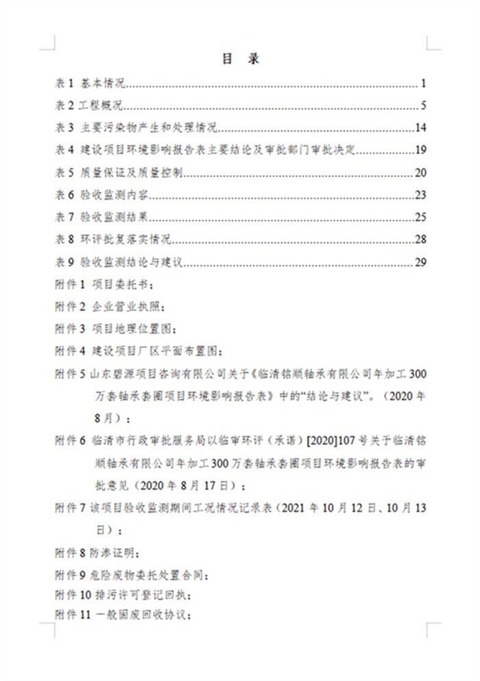 临清铭顺轴承有限公司年加工300万套轴承套圈项目(一期工程)