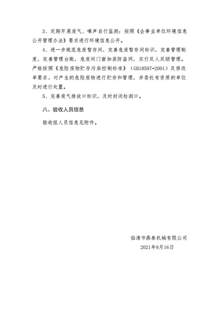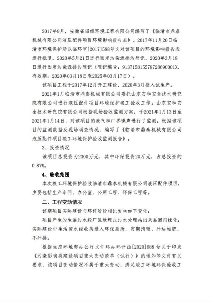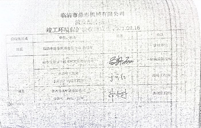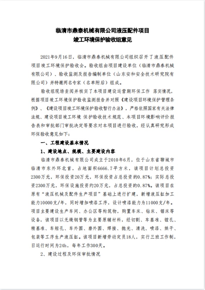 临清市鼎泰机械有限公司液压配件项目验收专家意见与签字