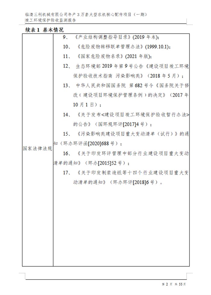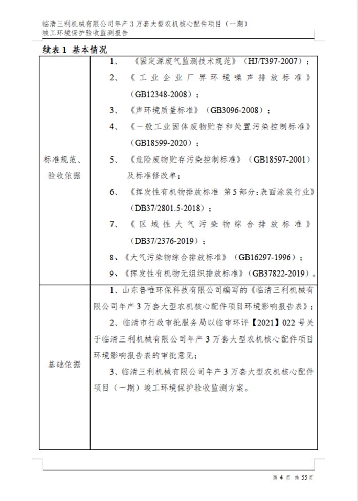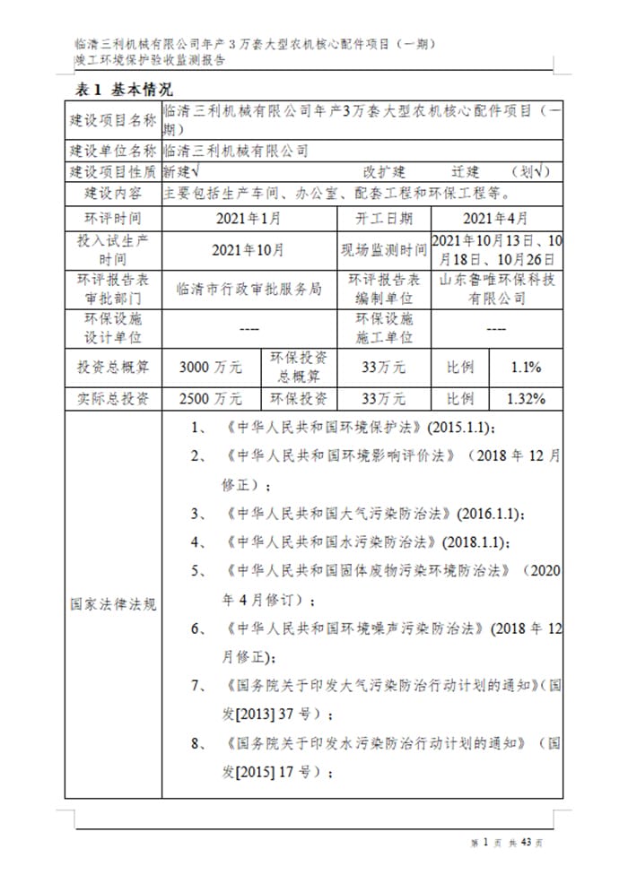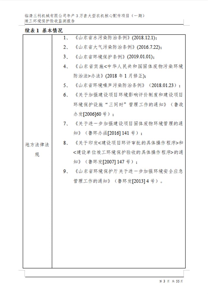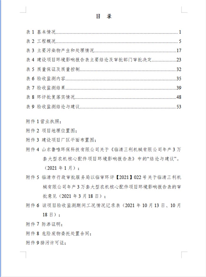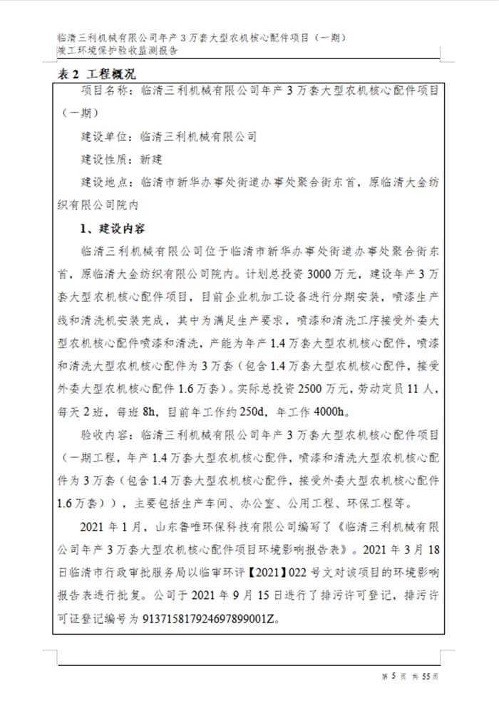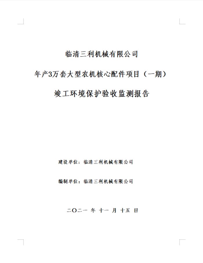 临清三利机械有限公司年产3万套大型农机核心配件项目验收报告