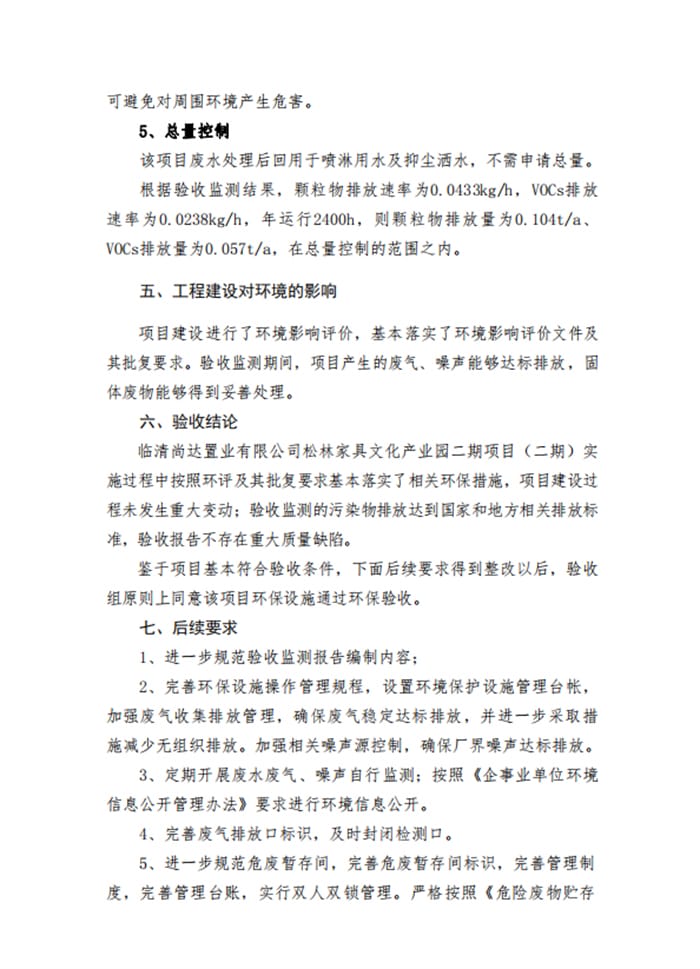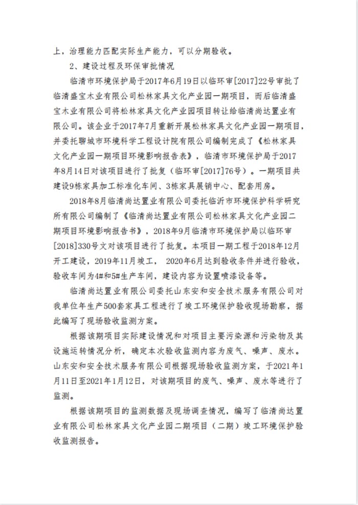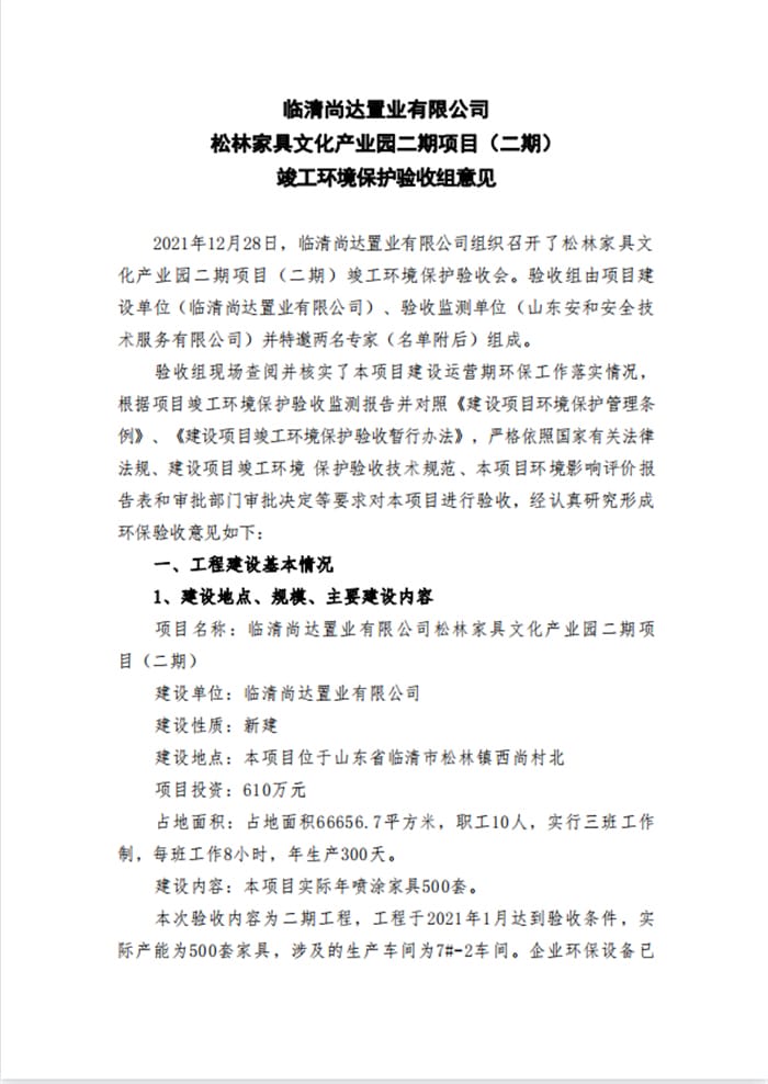 临清尚达置业有限公司松林家具文化产业园二期项目(二期)验收意见