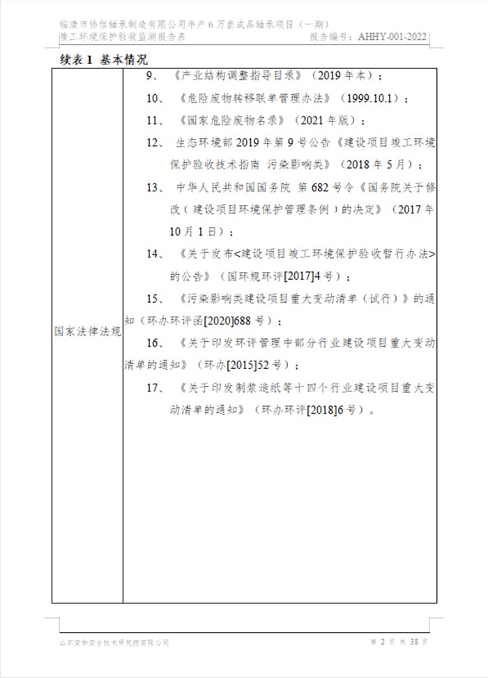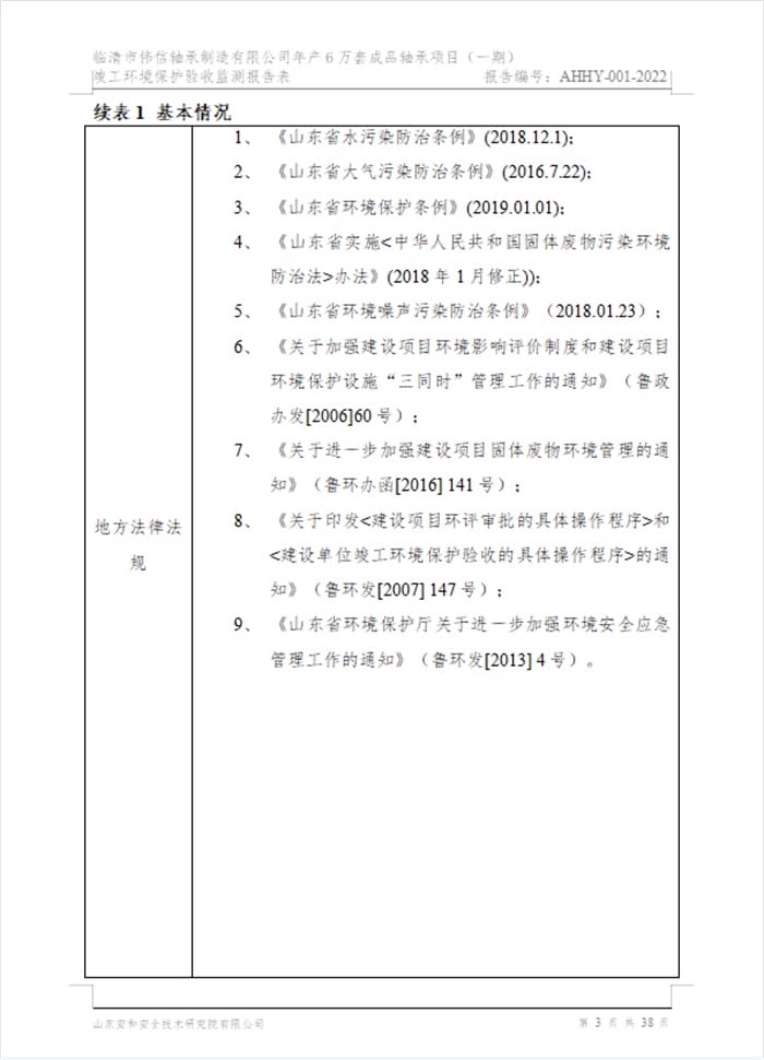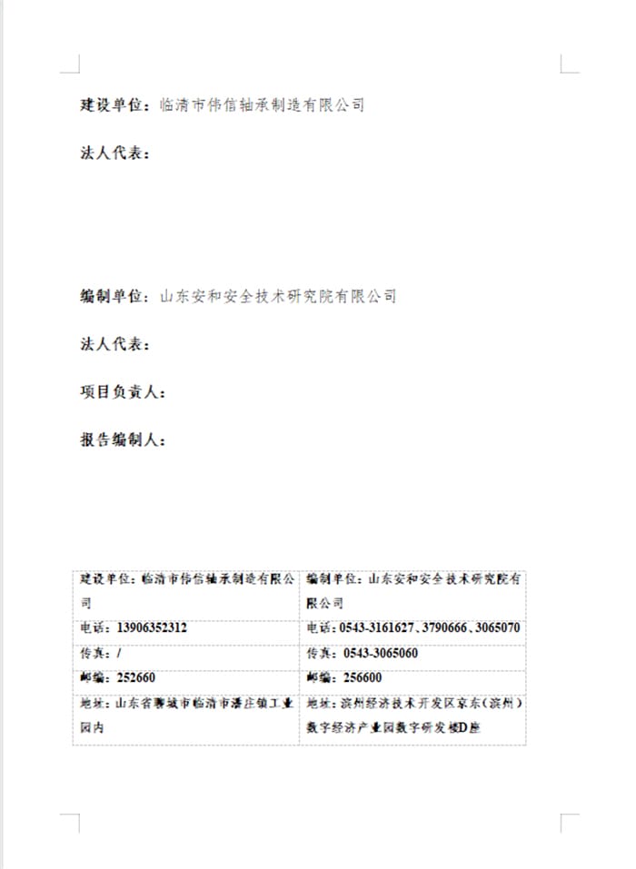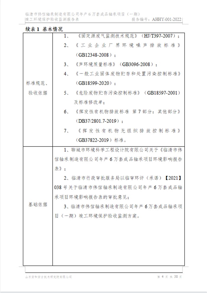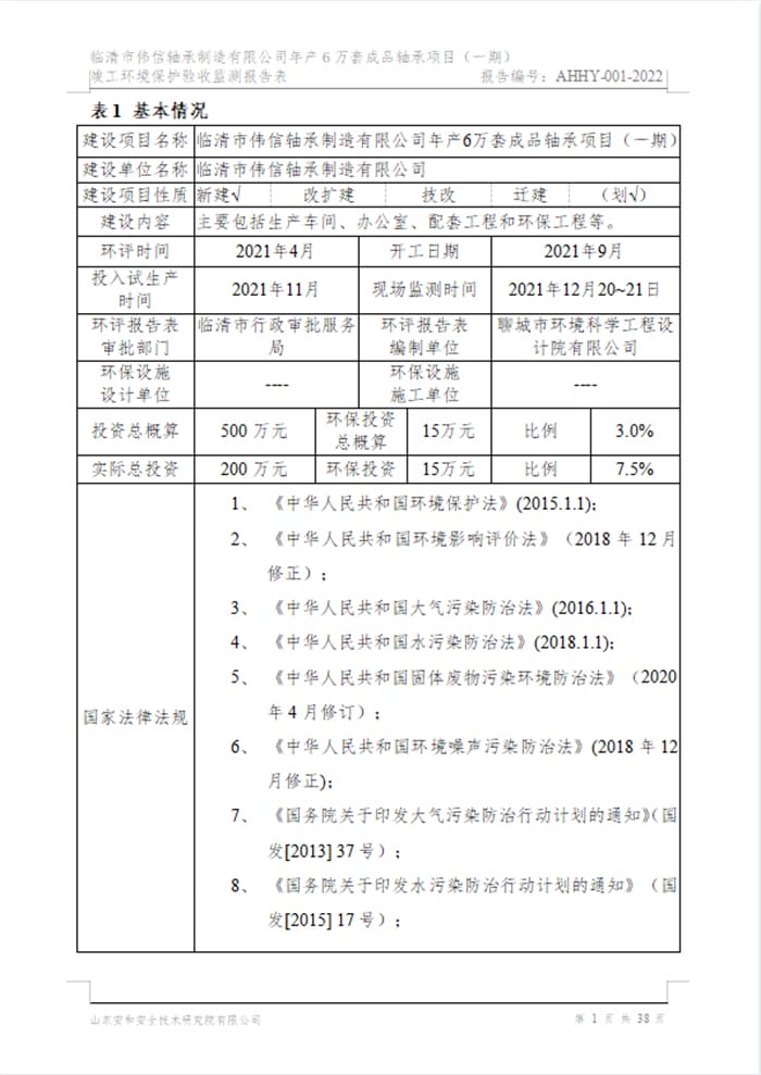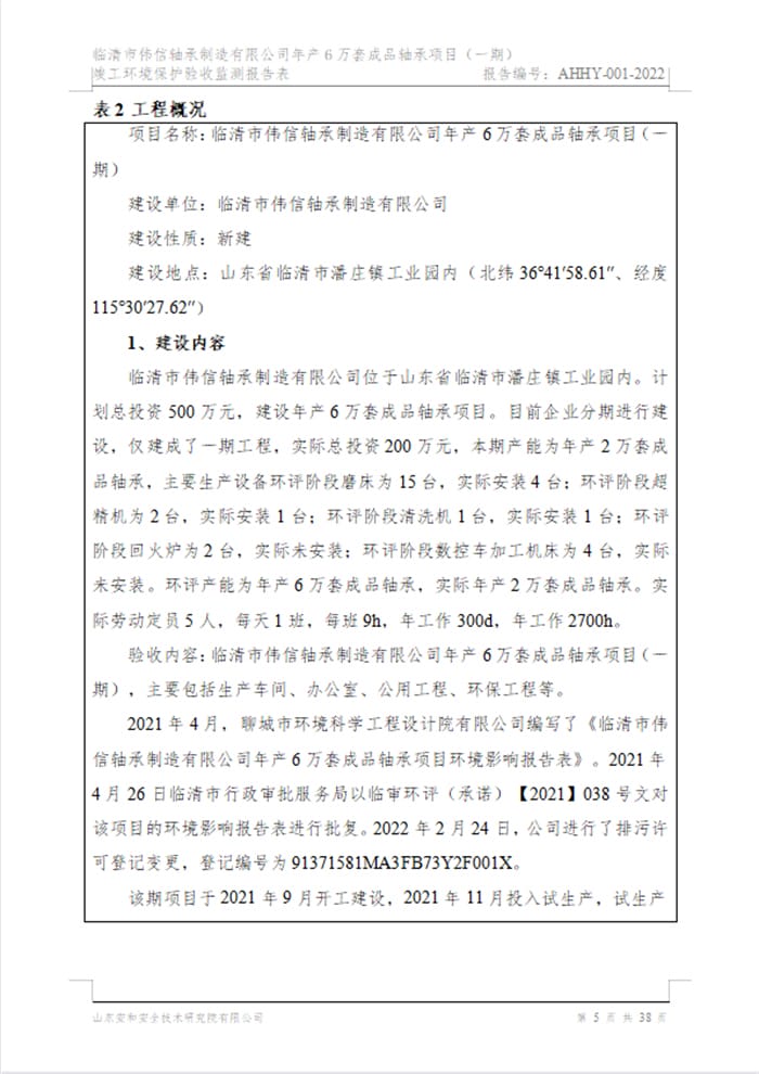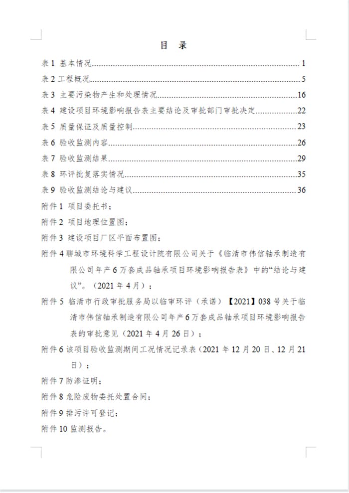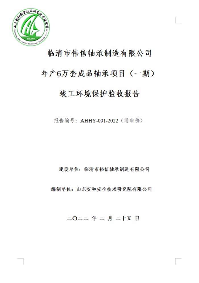 临清市伟信轴承制造有限公司年产6万套成品轴承项目(一期)验收报告