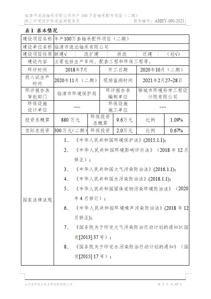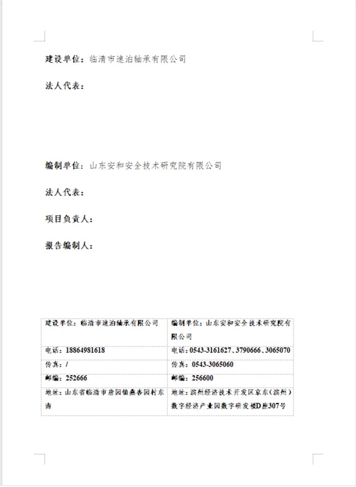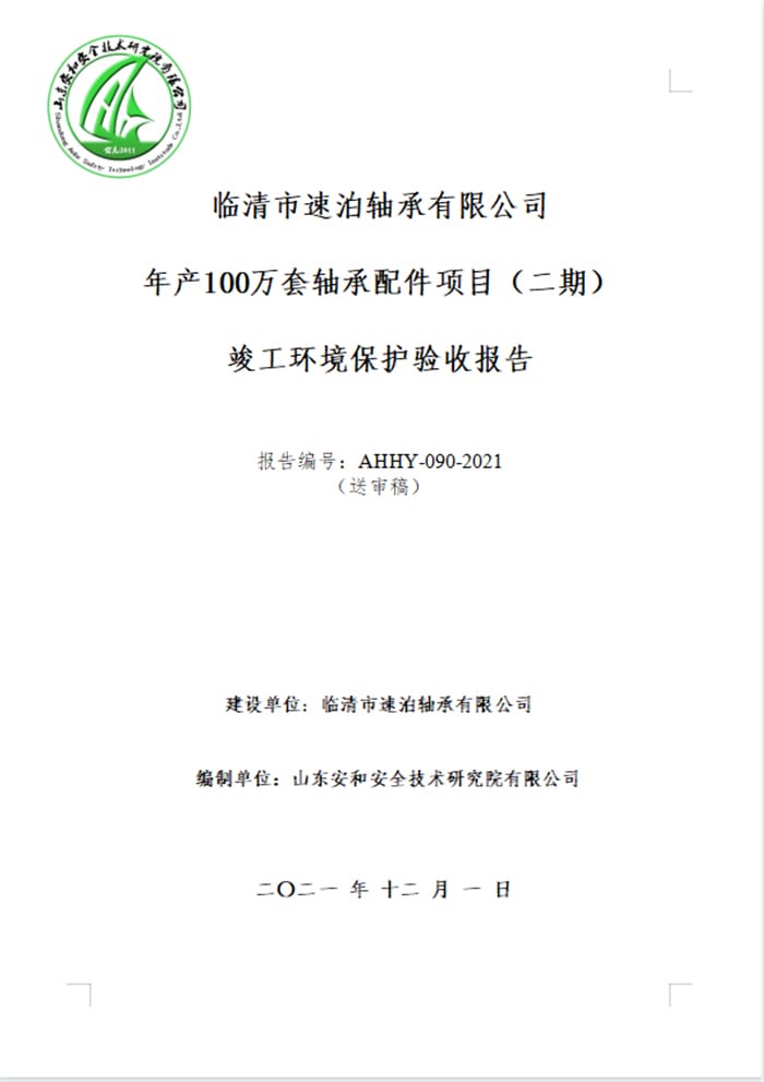 临清市速泊轴承有限公司年产100万套轴承配件项目(二期)