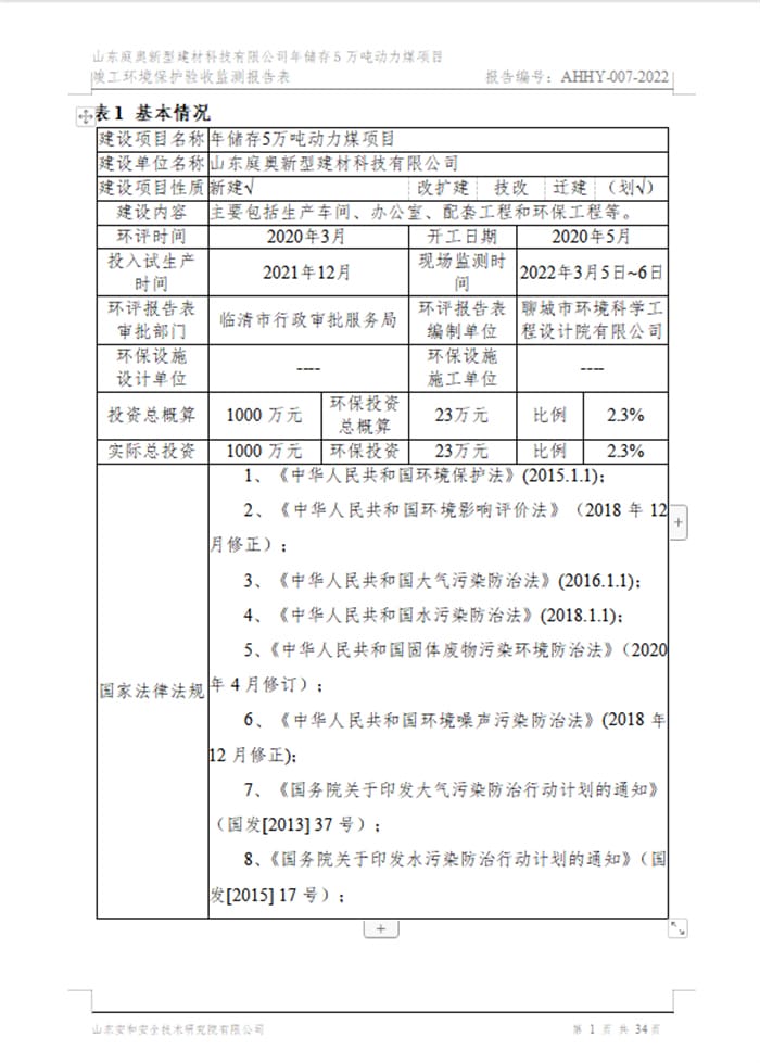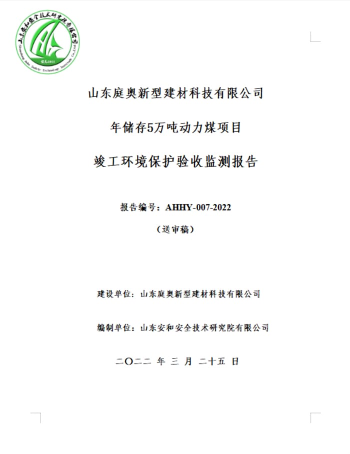 山东庭奥新型建材科技有限公司年储存5万吨动力煤项目验收报告