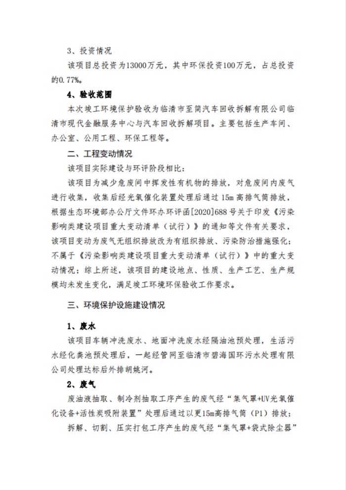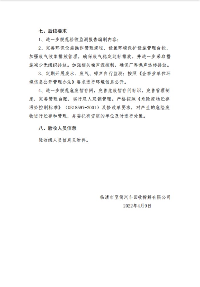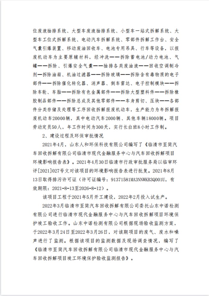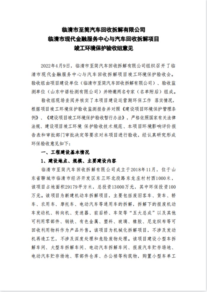 临清市至简汽车回收拆解有限公司临清市现代金融服务中心与汽车回收拆解项目验收意见
