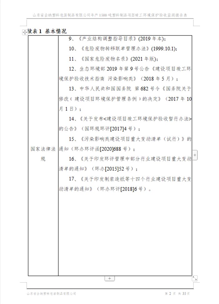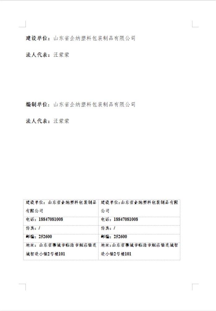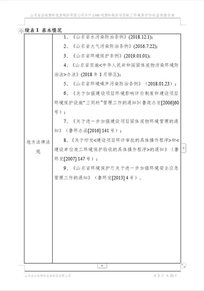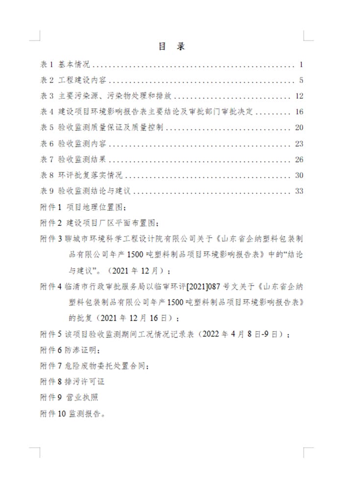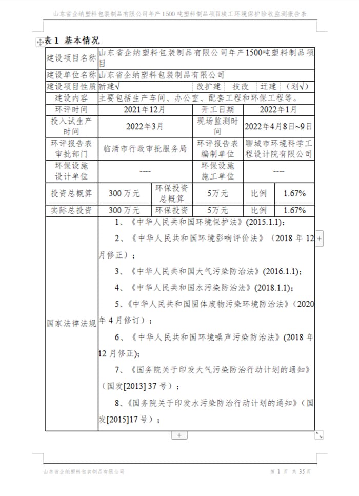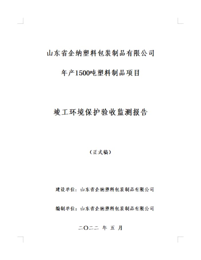 山东省企纳塑料包装制品有限公司年产1500吨塑料制品项目验收报告