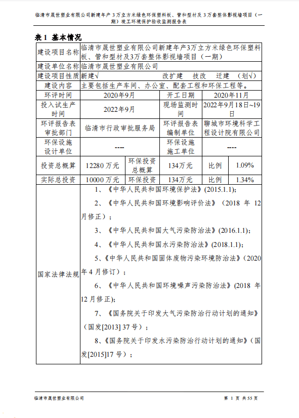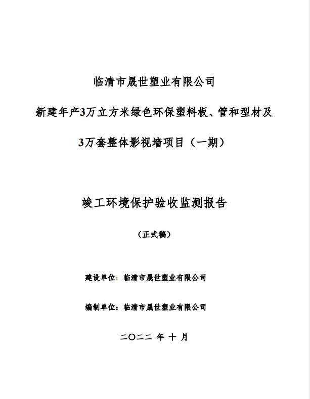 环境验收——临清市晟世塑业有限公司新建年产3万立方米绿色环保塑料板、管和型材及3万套整体影视墙项目 - 修订.pdf