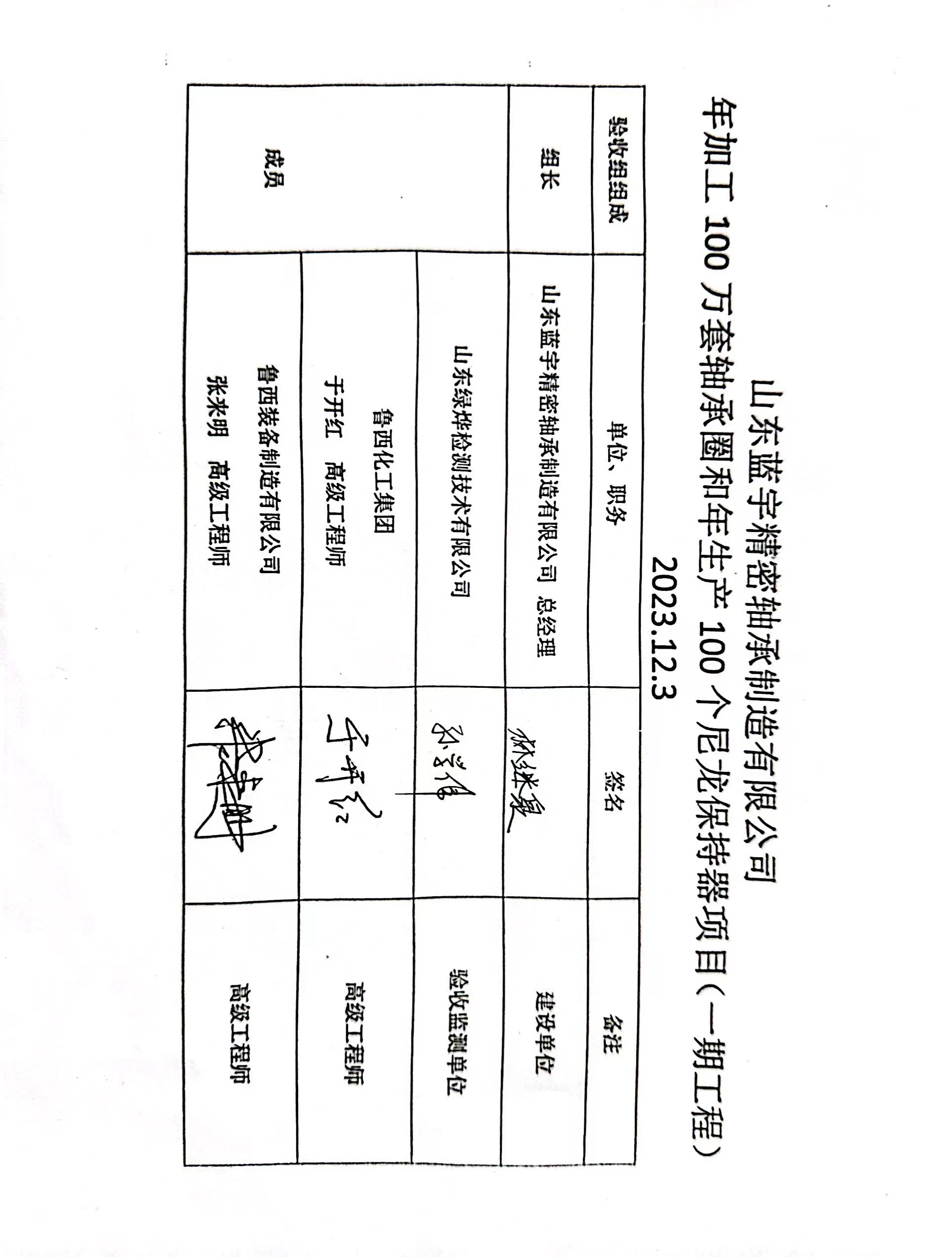 环境验收——山东蓝宇精密轴承制造有限公司年加工100万套轴承圈和年生产100个尼龙保持器项目(一期工程).pdf