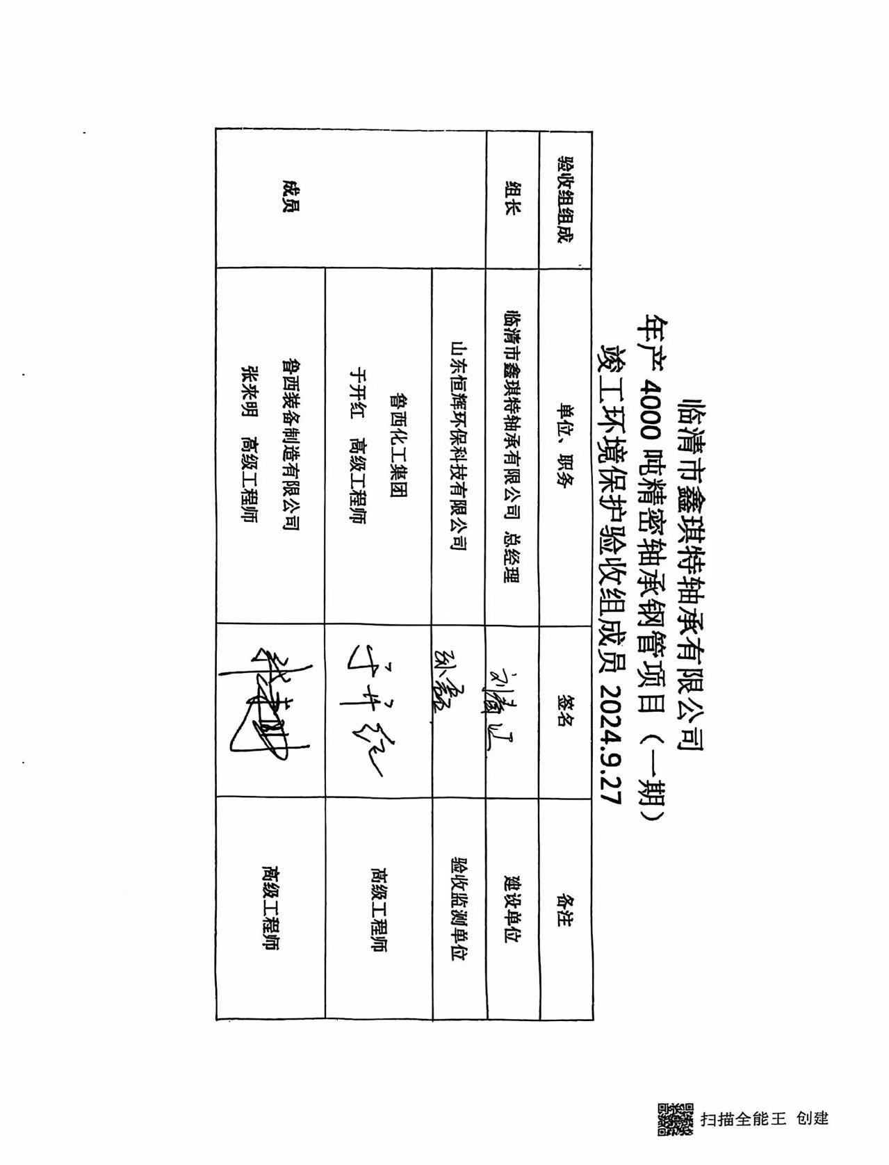 环境验收——临清市鑫琪特轴承有限公司年产4000吨精密轴承钢管项目(一期工程).pdf